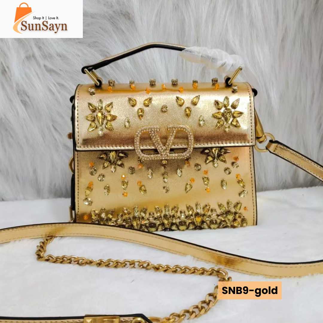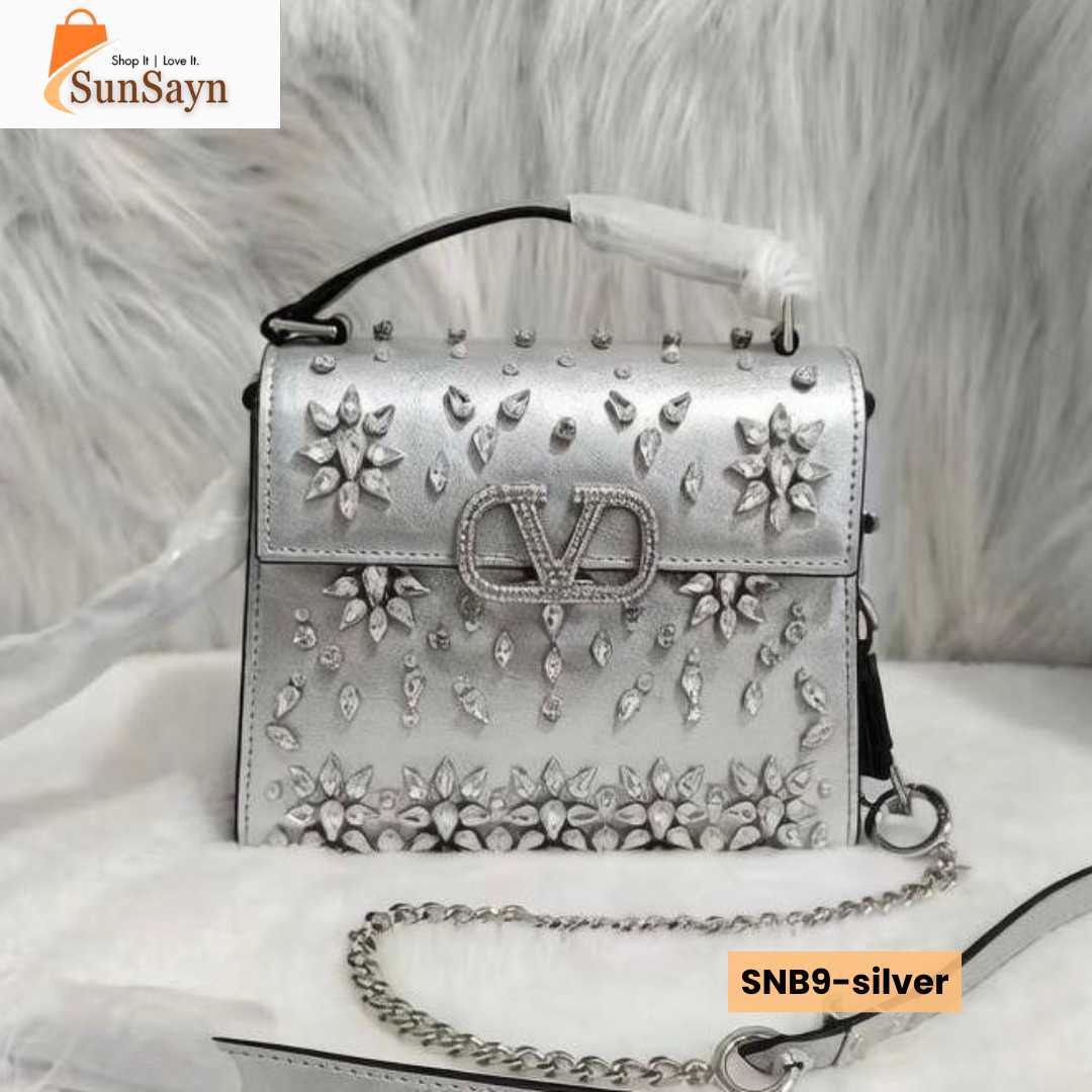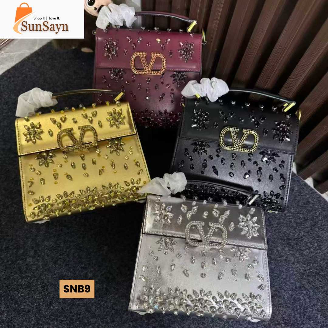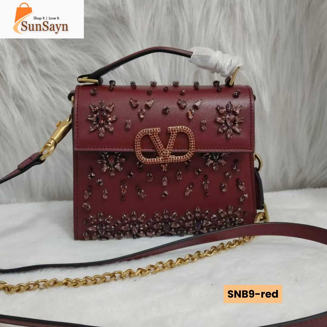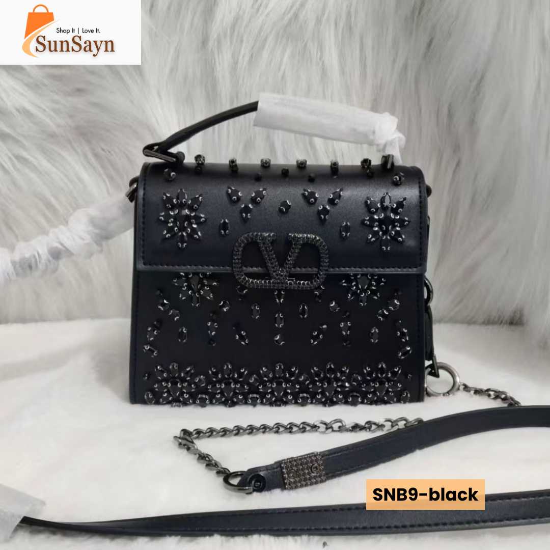This luxury ladies handbag features a modern yet timeless design that complements both casual and formal outfits. Crafted with high-quality materials and featuring exquisite sparkling rhinestone embroidery, it offers a refined finish, smooth texture, and durable structure that maintains its shape even with regular use. The elegant craftsmanship reflects the signature style of Valentino Garavani, making it a must-have accessory for fashion-conscious women in Dubai.